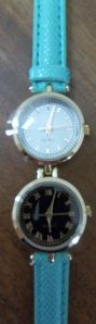 Anyway, we settled on Nordstrom Cafe…it’s always a crowd pleaser for us. I love their iced tea with the orange slices – I’m somewhat addicted to iced tea and iced latte. It’s one of our favorite places to go for a quick bite especially before or after shopping. After lunch, with the cafe strategically placed at the top floor, we walked by the Brass Plum jewelry section where I spotted a display of dainty watches. With all the ginormous watches lately, it was nice to see some demure sizes for a change. The Titanium mint green with two faces caught my eye – it’s so pretty and lady-like and the two faces were unusual I thought. (Titanium is the brand name; it’s not actually made of titanium.) The photos below are coming off more like Tiffany blue but it’s actually green IRL. I looked at the price tag – $18 – wow…not bad. The hubby saw that I was eyeing it for a few minutes…after I put it back on the display he grabbed it and bought it for me. I wouldn’t have bought it for myself; don’t need another watch but it was so sweet that he got it for me instead. I do adore this watch – it’s different than most of the watches I have now and quite dainty.