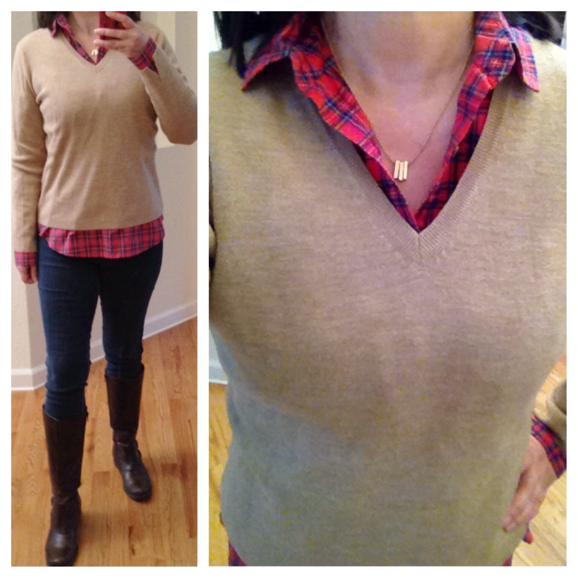Monday 110314 – coldest day of last week..layered with another Loft item with my vneck sweater and JCrew tartan plaid popover