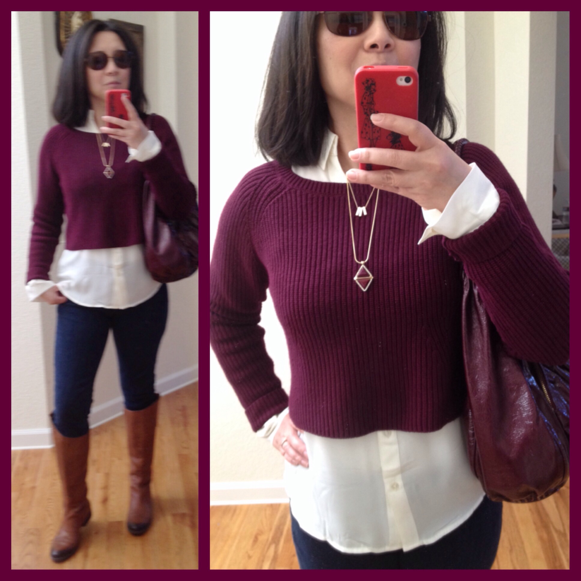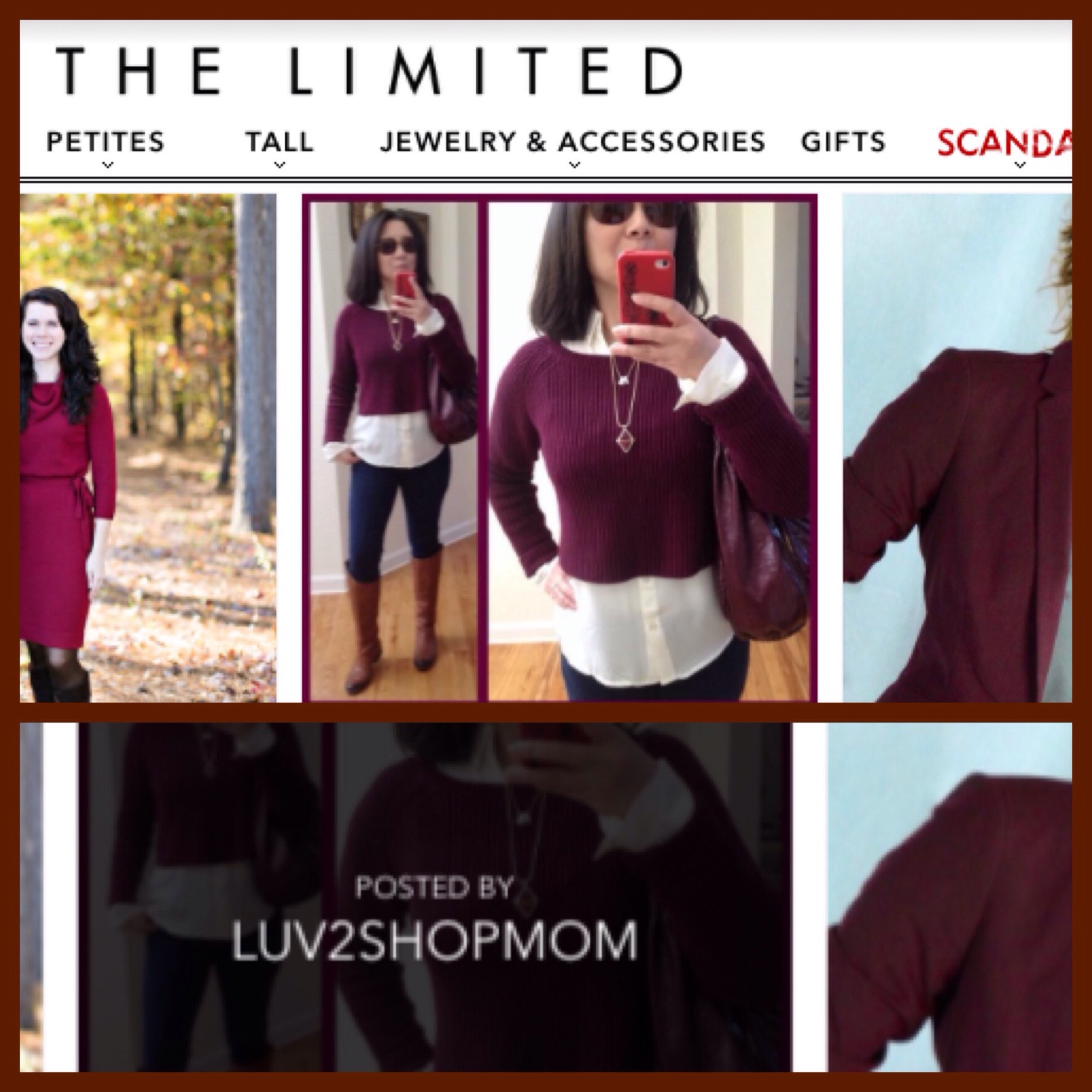 Tuesday 110413 – sweater and Ashton button down from The Limited, featured on their website’s social stream page…woohoo! Love this combo!