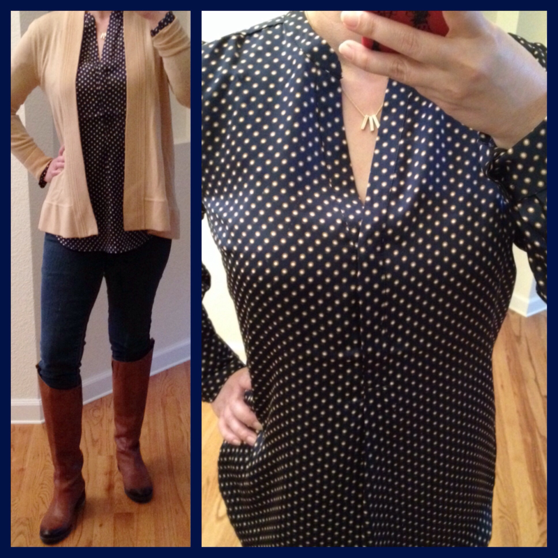 Thursday 110614 – again from The Limited, love this soft tunic top (on sale + addl 40% off) with an old JCrew swing cardigan