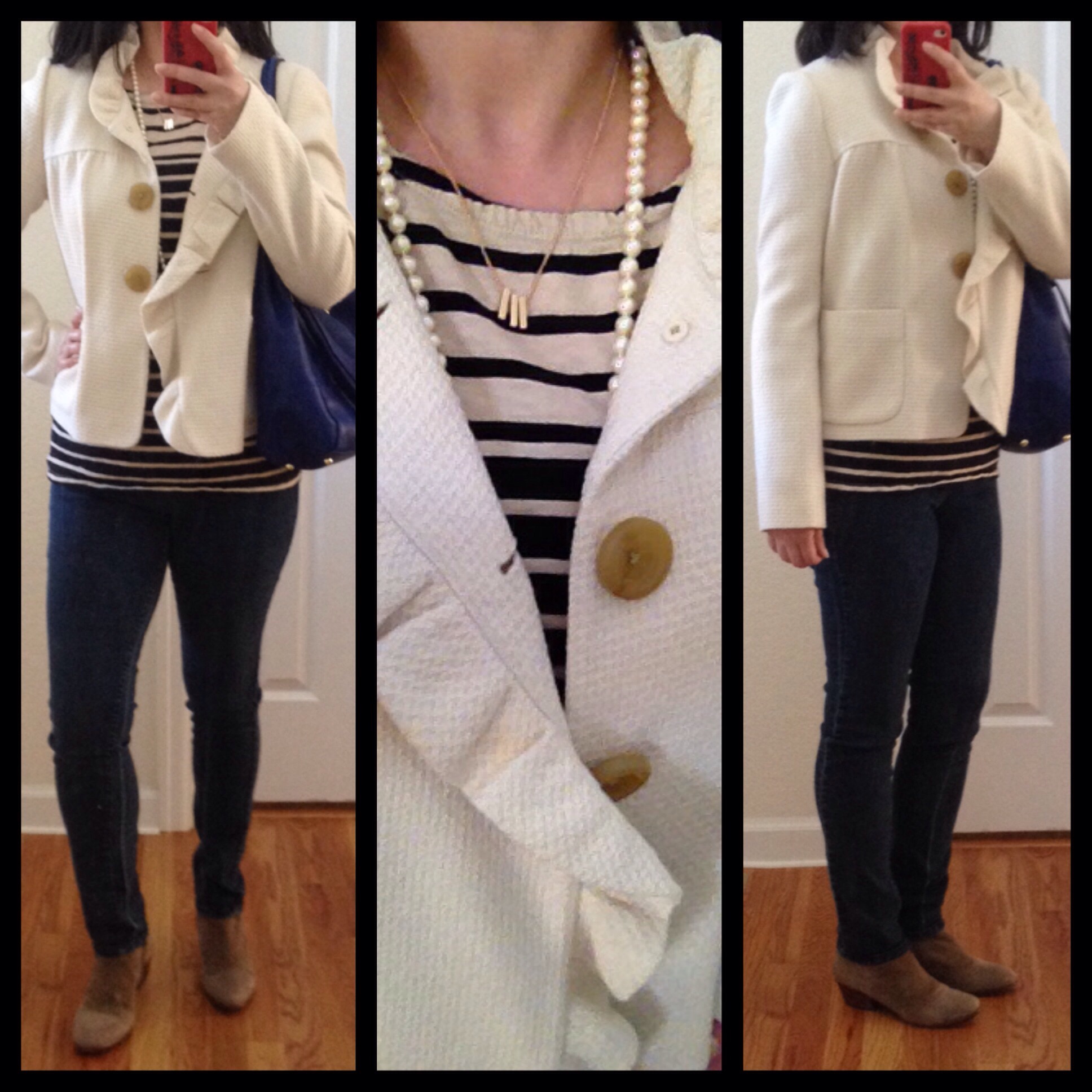 For Monday, Tuesday, Wednesday and Friday – pulled out some oldies but goodies…the J.Crew Fiona jacket made two appearances in orange and the cream boucle…love this jacket!