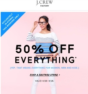 Thought I’d share these fabulous sale emails I received in case you’re headed to any factory outlet malls this weekend. Wished I could go but lots of chores to do around the house :(. Have fun shopping if you go and let me know if you snagged any bargains.