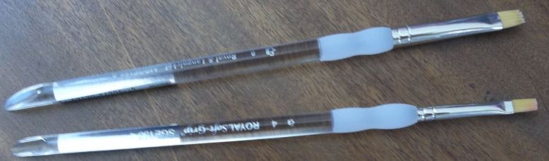 I also wanted to mention that one of the best tools I’ve purchased for my nail polish application routine is a couple of brushes from Michael’s. They’re actually art/painting brushes called Royal & Langnickel Soft Grip. I know I could’ve just bought similar brushes from Sally’s but these are amazing. The brush head is very firm, perfect for cleaning up nail polish application mistakes. And it has a soft grip (hence the name) to make it easier to maneuver and also a pointed end where nail-polish remover dipped cotton can be wrapped for even more clean up options. To top it off, they were only about $2-$3 each.