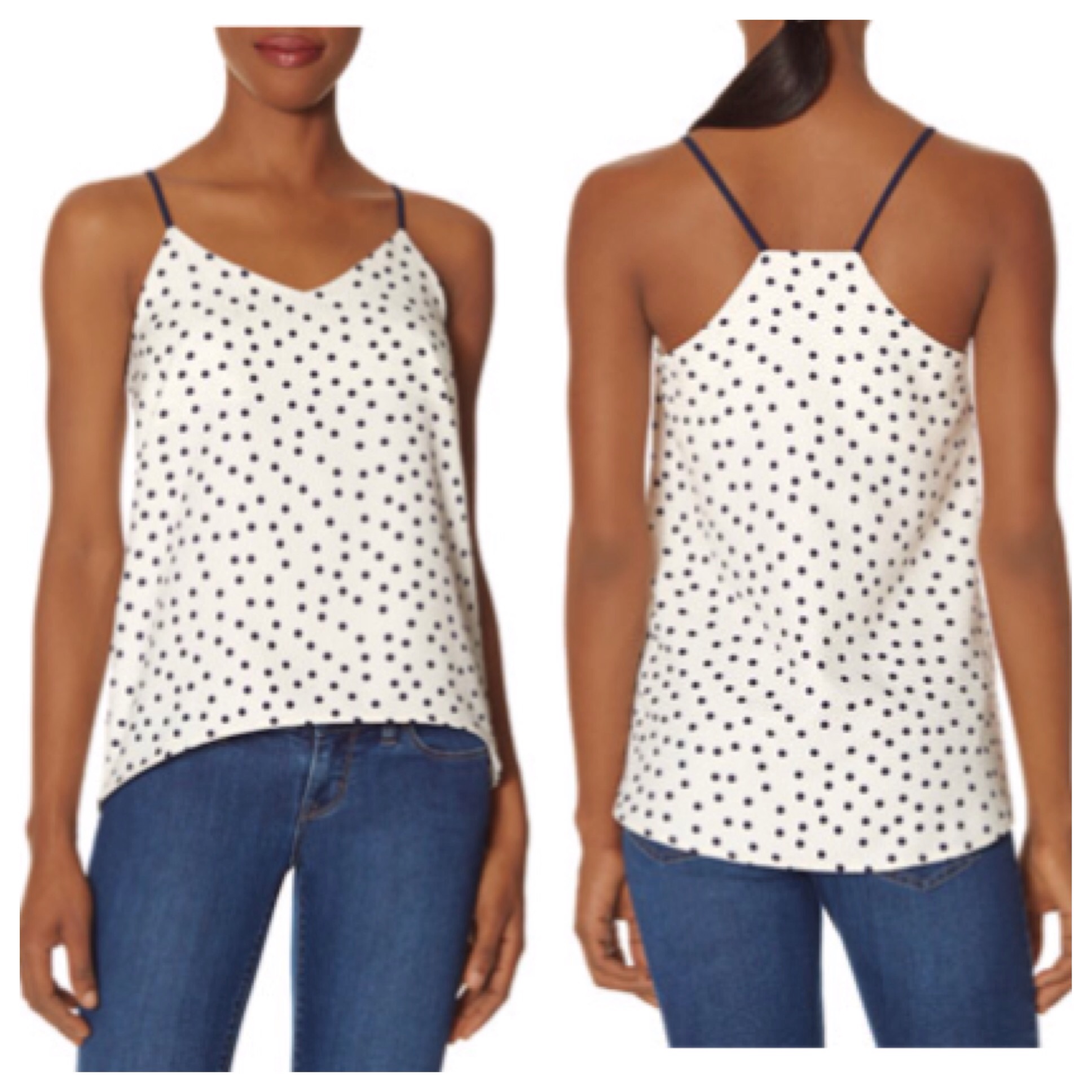 Love racer back tanks and the navy dots are adorable – see here