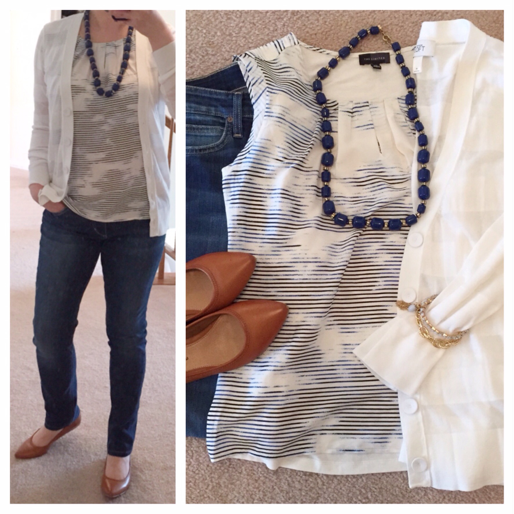 The first three months of the year here in Colorado bring some cold frigid days sprinkled with crisp sunny days which make me dream of Spring. After a few days of snow and gloomy freezing temps earlier this week, the sun came out yesterday. And even in the 40s, it was gorgeous. And then I opened an email from The Limited with big bold letters: 50% OFF FULL PRICED ITEMS — that sent me over the edge…lol. After work, since I had to pick up a pair of Joe’s jeans at Nordstrom’s (for alteration and which btw, were on sale for almost 2/3 off – see jeans below in outfit pics), I stopped by The Limited. I actually was looking for something specific. Typically for Spring, I like to update my wardrobe with fun tops or shells that I can wear under a cardigan or blazer. And that’s exactly what I found there at 50% off. These were so pretty and such a great deal, I thought it would be a fun first post of the year. All these are still available in store and online here. Check out how I can incorporate them with my existing pieces below (most of the cardigans are from J.Crew, white one is from Loft, all old).