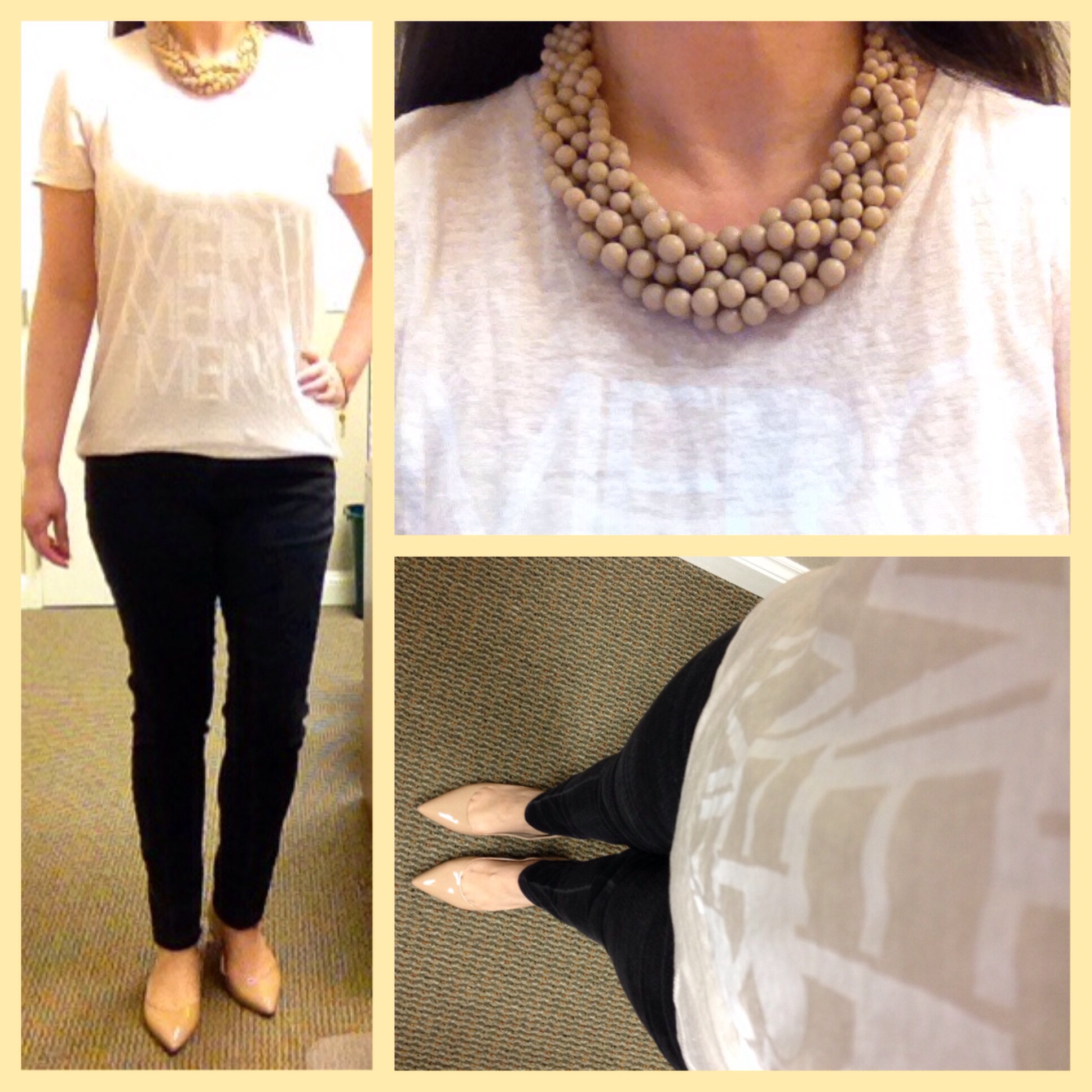 Thought I’d share the outfits I wore this week…it’s a nice way to reflect back on my choices and get inspired for future OOTDs. Hopefully, you can get some ideas as well. Looks like I was favoring nude shoes this week with my Via Spiga flats and Nine West pumps….love ’em both!